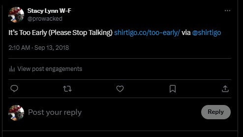It’s Too Early (Please Stop Talking) – Shirtigo