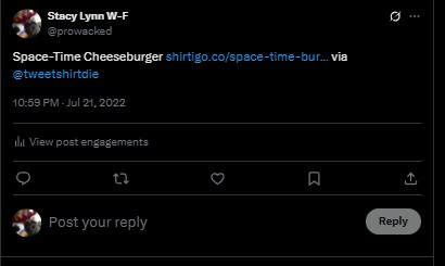 12 responses to “julytwentyfirst22 (Space Time Cheeseburger)”